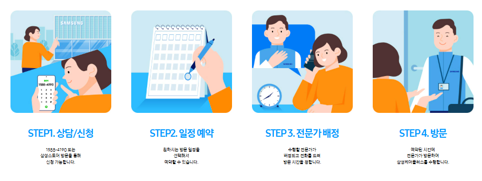 - 예약 시스템 간편: 삼성닷컴이나 고객센터를 통해 간편하게 원하는 날짜와 시간 예약이 가능합니다.