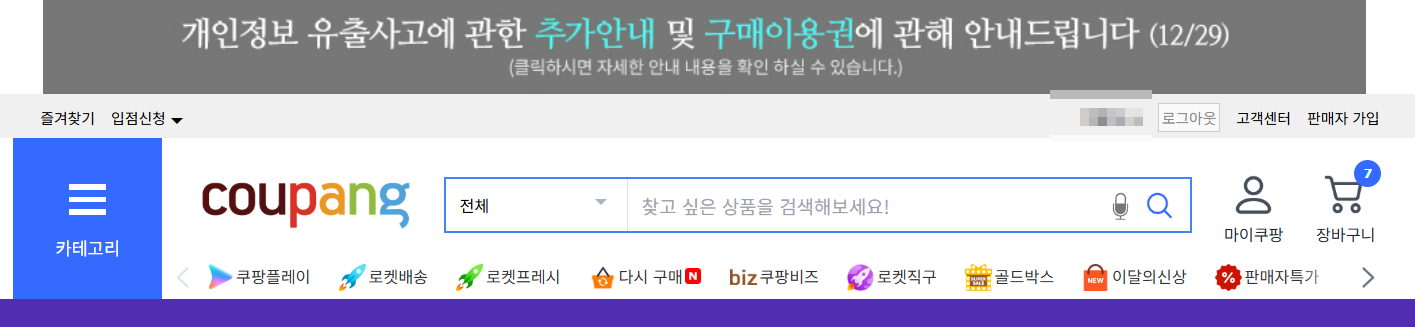 - 쿠팡 앱 → 고객센터 → 보안센터 → 개인정보 유출 여부 확인