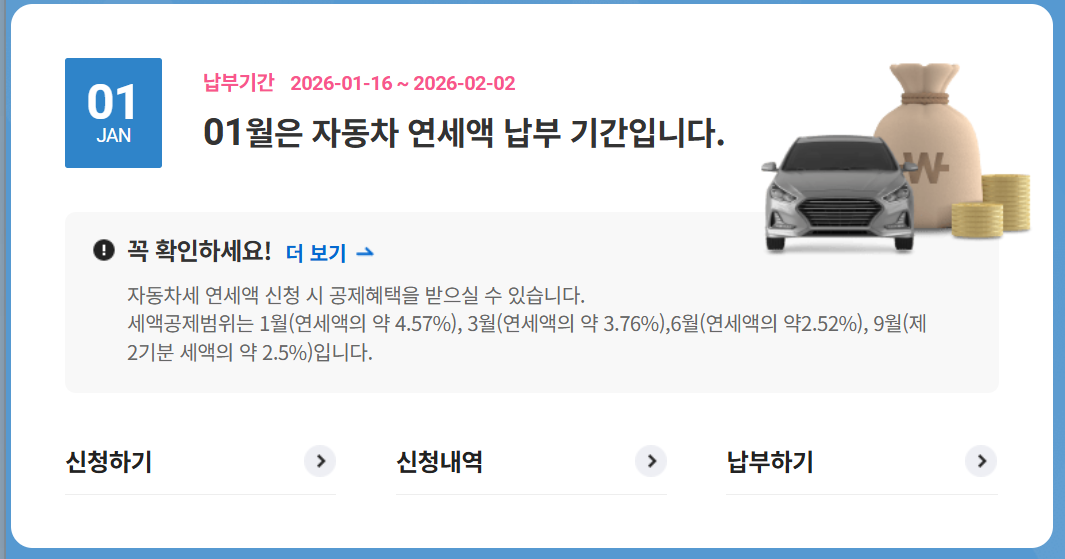 2026년 자동차세 연납 할인 신청 접수 방법·기간·감면 5% 이상 총정리